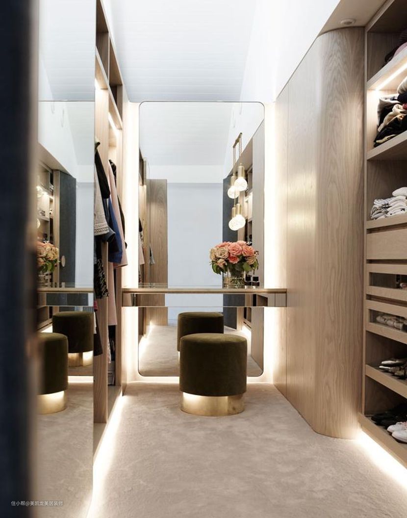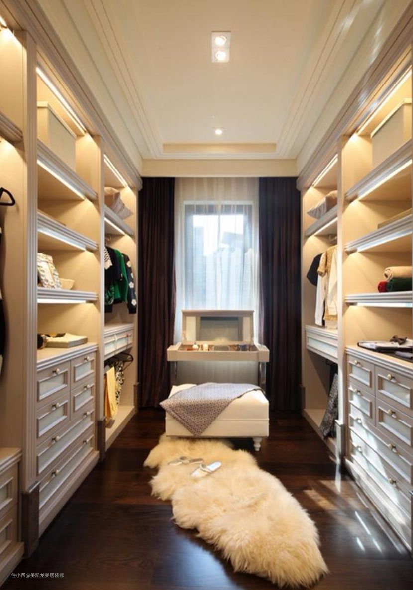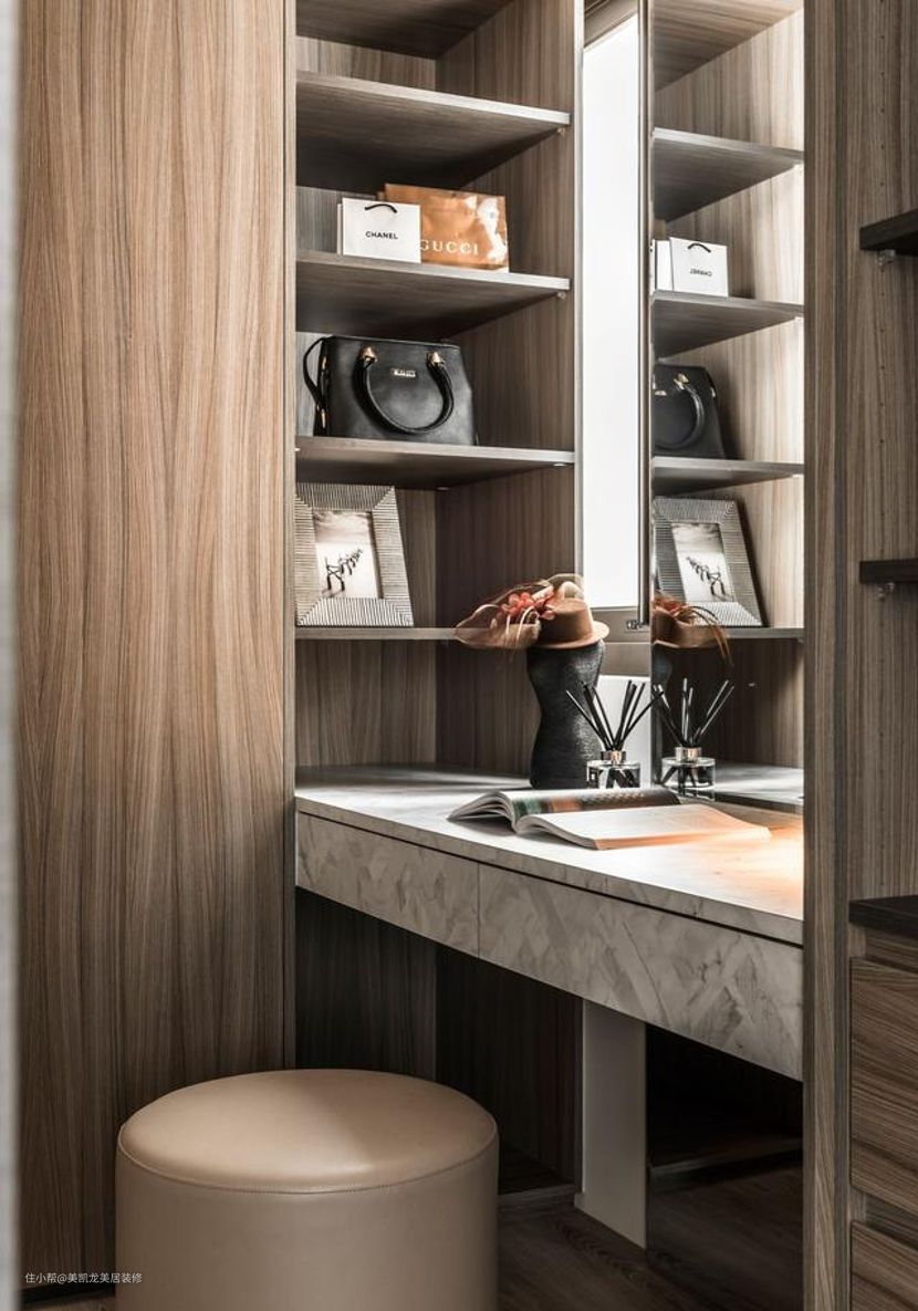 衣帽间加上梳妆台是女生的梦想之地,提高空间利用率,再也不用化妆去厕所蹭镜子了。