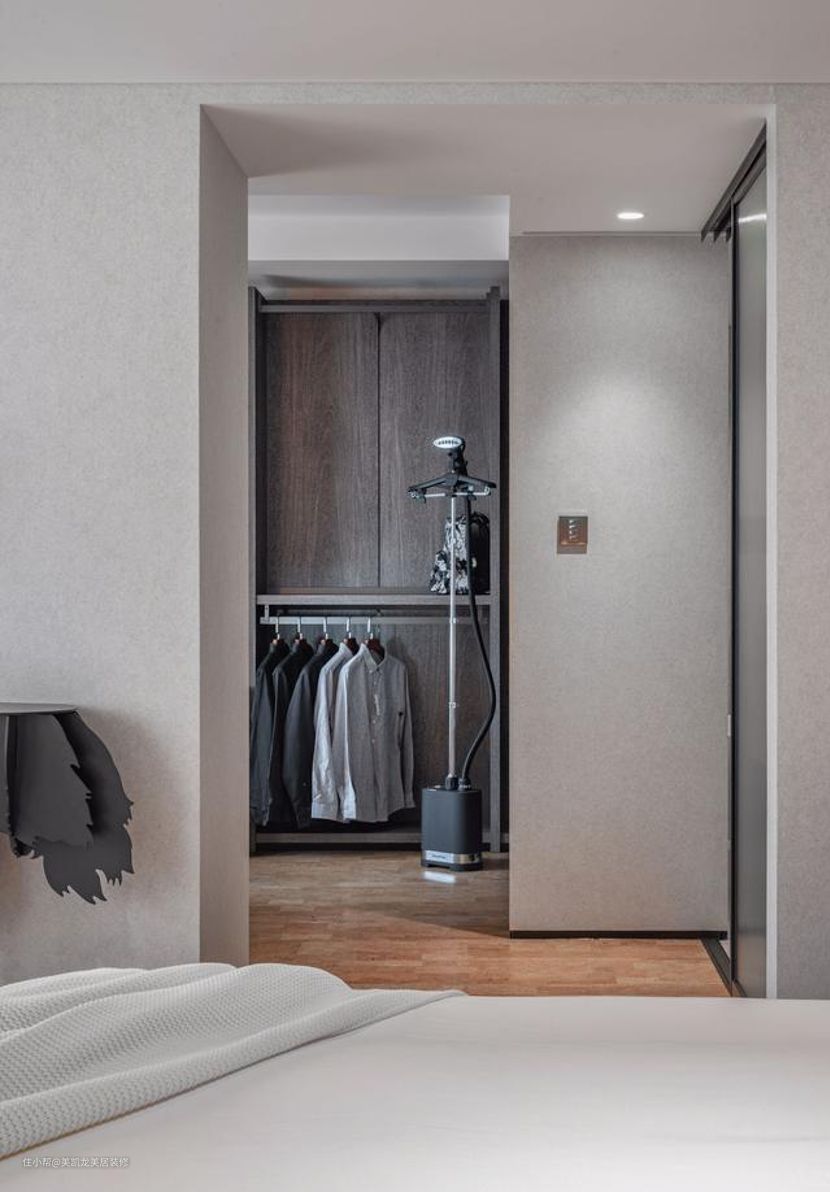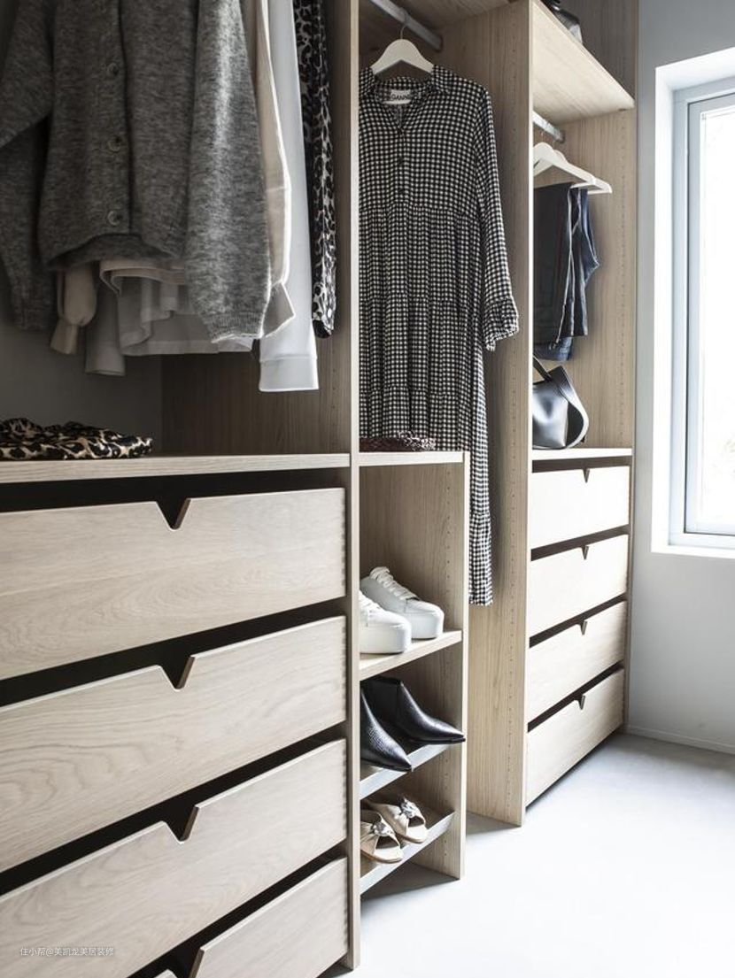 如果是开放式的衣帽间设计,这一点基本可以跳过了,(不行我还得叨叨一句:但是开放式容易落灰啊!!!建议安装玻璃的推拉门或者平开门,木质柜门或者纱帘也是很不错的选项。