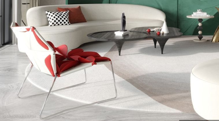 另外地毯和沙发同色系的话,比沙发颜色浅一点为好,不然会头重脚轻。