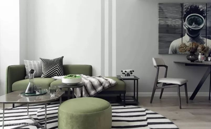覆盖面积大的地毯更是这个道理,纯彩色的话会显得颜色过重,几何条纹地毯才点到即止,敞亮宜人。