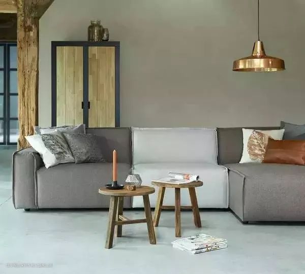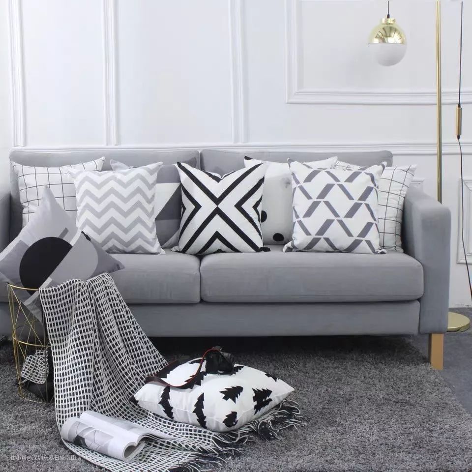 中性色靠垫既可以选纯色,也可以选几何花纹,另外一个带沙发色的则最好选几何图纹,不然太闷。