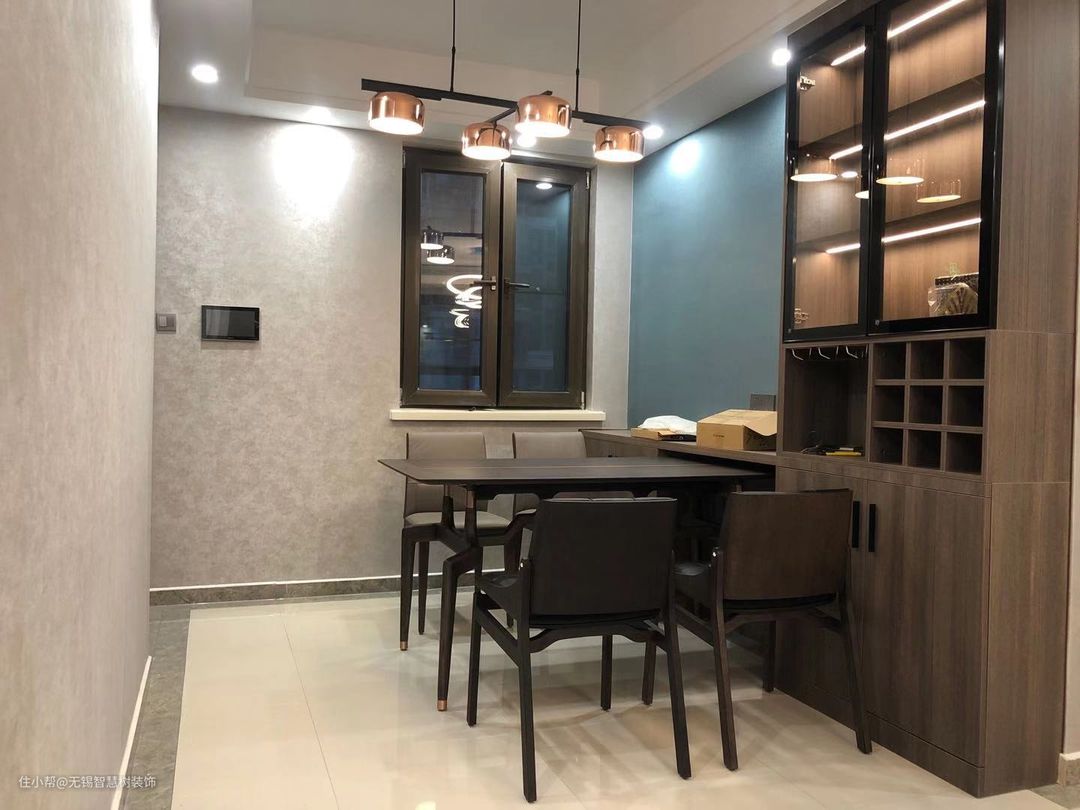 这是小哥哥家餐厅这块区域的改造,餐边柜是和全屋定制一起做的。这里面有个小细节,去年突然刮起了一阵玻璃柜门风,喜欢的客户非常多,但价格真的挺贵的。我们和小哥商量了一下找了这款平价代替款,价格差不多能下来一半,区别在于这种柜门的黑框部分会稍微粗一点,打上灯光不仔细看的话应该不太容易发现其中的区别。但银子是实实在在的替客户节约下来了。还有衣帽间也采用了这款玻璃门,希望小哥以后勤收纳哈,保持美美的效果。衣帽间的效果我拍的是视频,这里上传不了,有需要的小伙伴可以私信找我要,因为改造的比较满意,客户现在和我们是不错的朋友了,预约参观也可以。