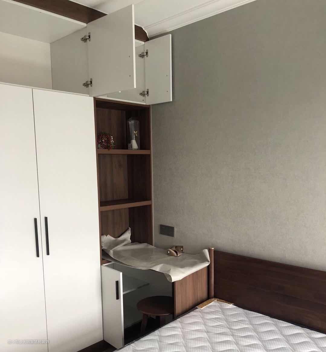 这是次卧的定制柜,因为房间本身比较局促,放完1。5米的床以后根本放不下床头柜了,所以就做了如图这样的设计,增加了实用性。