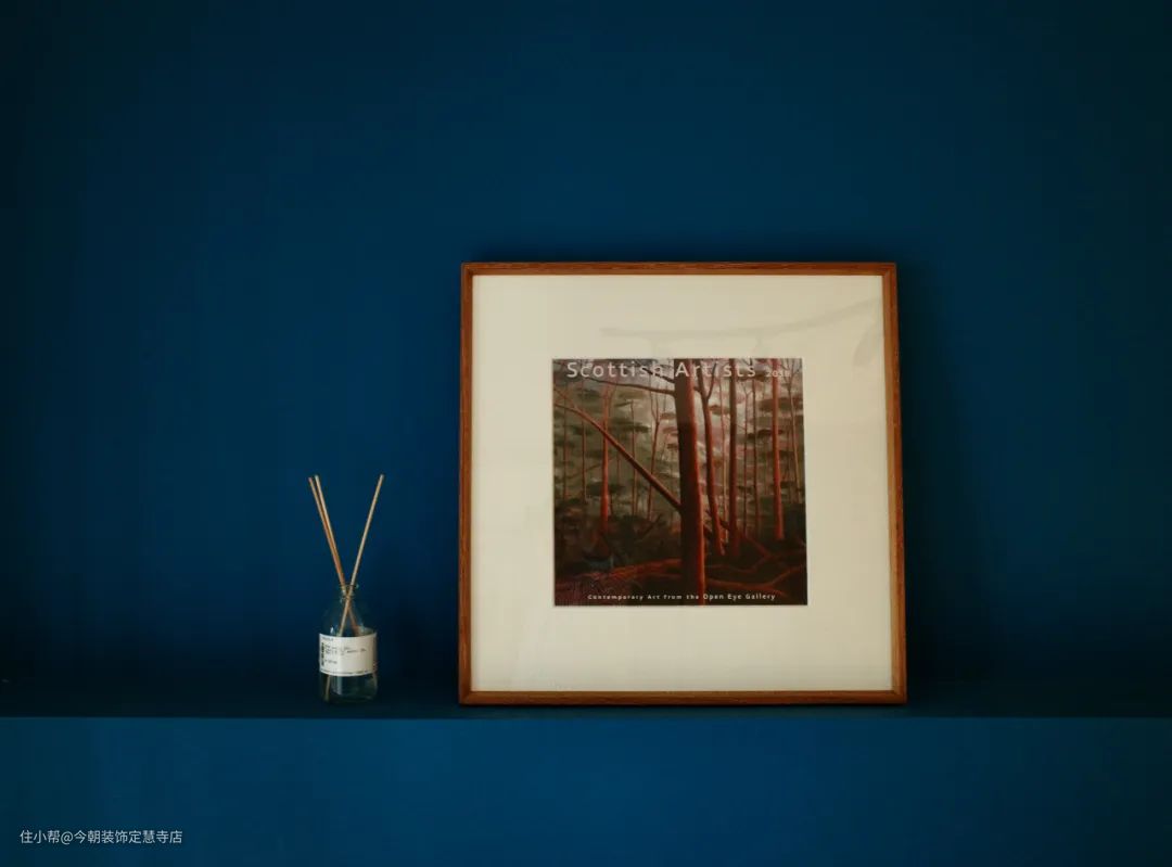日常生活中很喜欢蓝色,与设计师交流,告诉设计师主卧背景墙想要呈现稳重又静谧的氛围感。最终选择了潘通发布的 2020 年流行色——经典蓝。