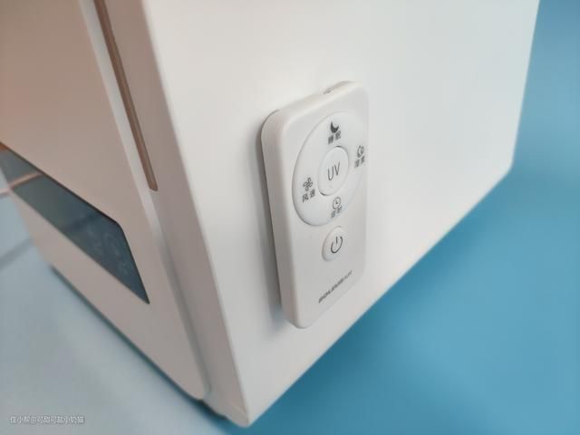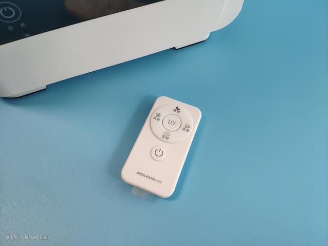 一开始提到起可以使用手动和遥控器控制,其出厂配置了一个红外遥控器,遥控器上的按键要比操作面板上的功能要多,如果实现定时功能,需要使用遥控器,起自带UV杀菌功能,我们可以使用遥控器操作,不过这个遥控器设计的电池仓真心一般,刚扣好电池,嘣弹开了无语的操作……