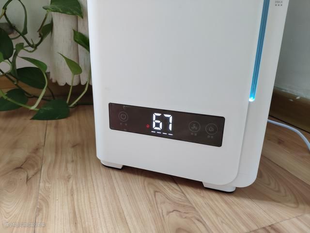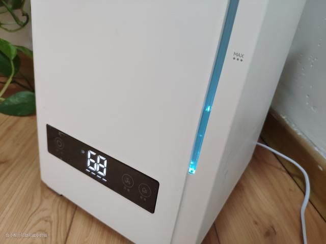 数显超大字体设计,开机后可以很清楚看到设备当前风速,当前房间内空气湿度,另外它支持缺水提醒,当无水状态时,湿度数字左下角会出现红色缺水图标,设备不工作。睡眠模式下数显关闭,夜晚不影响睡眠。