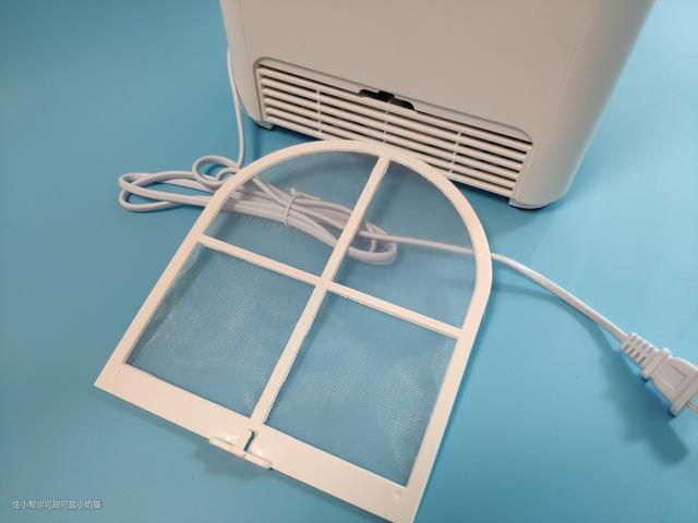 除了底部有格栅设计进风孔,侧面同样合计了部分通风孔,在侧面通风格栅的上面有个“PUSH”按钮,轻松一按,就弹出一个滤网,这个过滤网可以放置蚊虫被吸入产品内部污染水,还有效起到防尘作用,长时间有灰尘了清洗也很方便。
