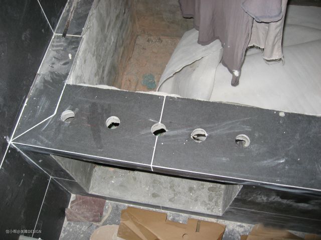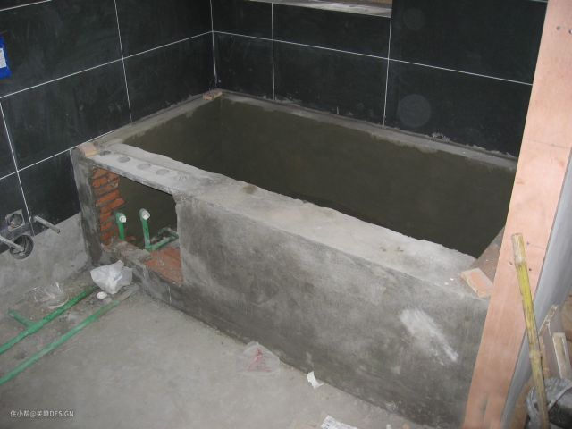 c、浴缸槽砌好之后,要做好防水,有小伙伴可能会说,浴缸直接排到下水道防水可以不做。处着对你业主负责的态度,防水还是要做的,特别是各个阴阳角。