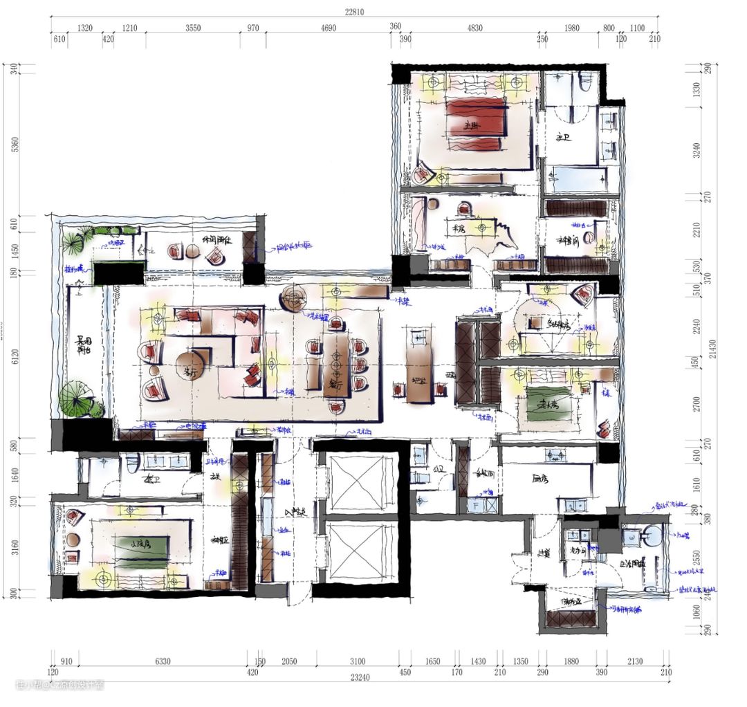 由于项目时间比较紧张,基本是能够直接购买的家具,遵循原本空间的软装色彩搭配,家具款式以及颜色上更加局限性,经过反复的考虑,后期的效果还是达到了预期想法。