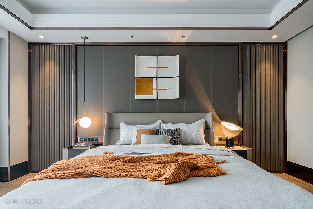 床及床头柜:Poliform 在家具的选择上,两边为相同款式的床头柜;左右不同的灯具,暖色灯光柔软得像能照进心里,心情也忍不住柔软了下来放眼看,硬装上的对称和软装上的不对称结合,既保留整体感,又处处存在着不一样的特色