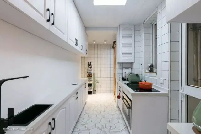 案例二:厨房7平米,屋主热爱烘焙、做饭,厨房就是英雄用武之地,小小厨房装下了洗碗机、净水器、燃气表、冰箱、热水器、还有各种小家电:烤箱、面包机、面条机、空气炸锅,一切都是井然有序,所以,根据自己的实际情况和生活习惯,再小的厨房好好规划也是会为你所用的。