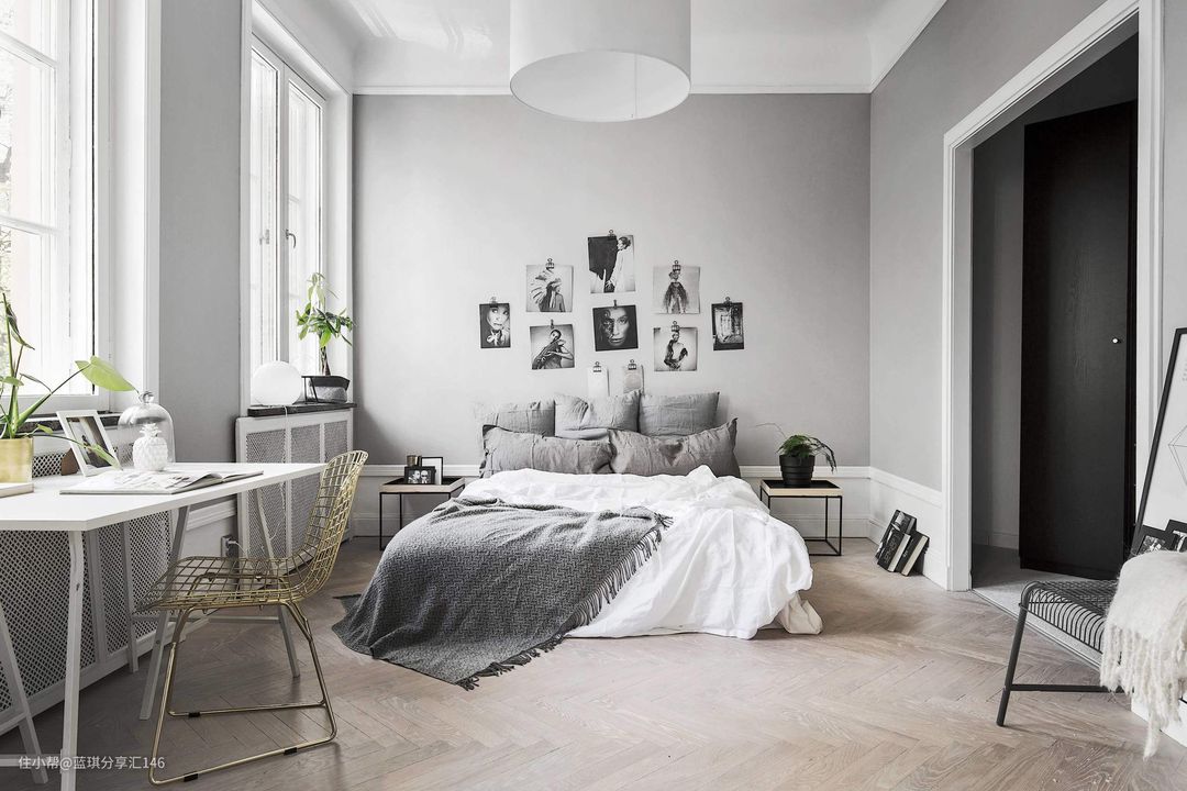 卧室的空间要是比较小,那么在前期购买家具的时候就要特别注意,尽可能购买提及较小的可折叠家具,便于后期的收纳,还有就是随时移动。将床摆放在靠墙处可以有效地节约空间面积,而在另一侧的墙边摆放可折叠家具,不用时收起来,为房间腾出活动空间。