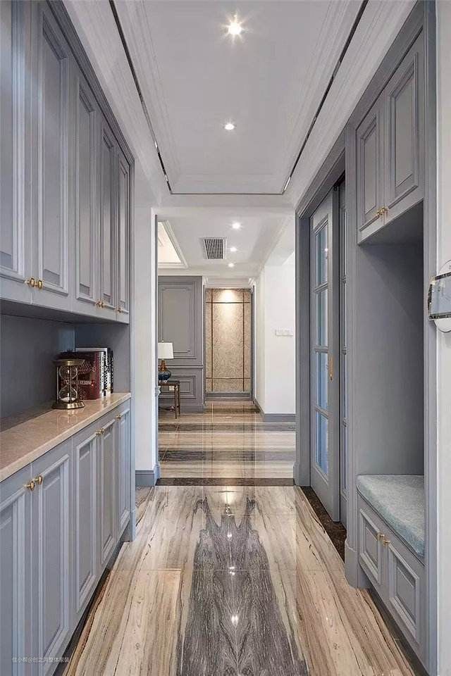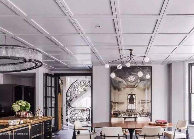 这类风格比较适合层高大的空间,但井格式的设计可以拉伸空间的纵深,如果你家比较狭长,就推荐使用这一类风格的吊顶。