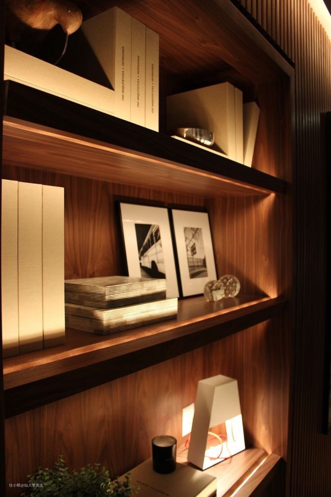 这种方式同样适用于书架,不同的是灯带的位置靠前。明暗呼应,更添一丝庄重神秘感。