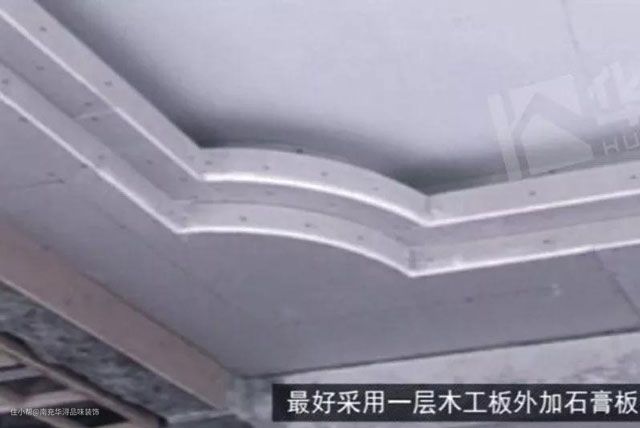 安装石膏板:调平验收后,先封一层5厘或9厘夹板,涂刷白胶后再封一层9厘纸面石膏板。石膏板用专用螺丝,安装必须牢固、严密、平整。