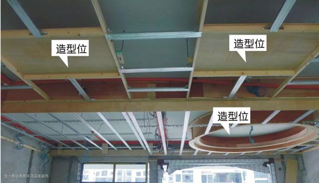 它的施工工艺主要是:弹线定位、安装吊杆、安装龙骨、调平验收、安装石膏板。