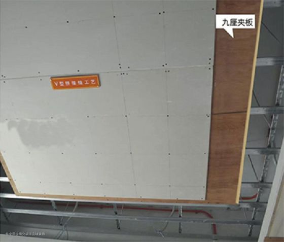 双层板天花制作工艺,利于增强环保及提升防火性能,减少天花开裂几率。