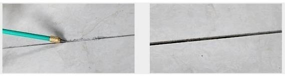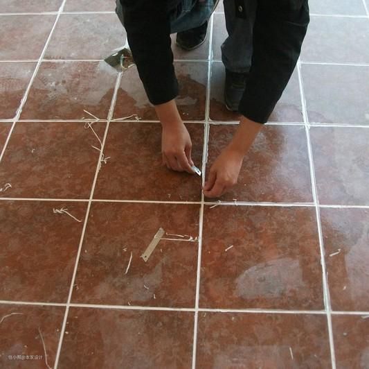 用清缝锥处理瓷砖缝隙,留出1-2mm缝隙,深度约在2mm左右