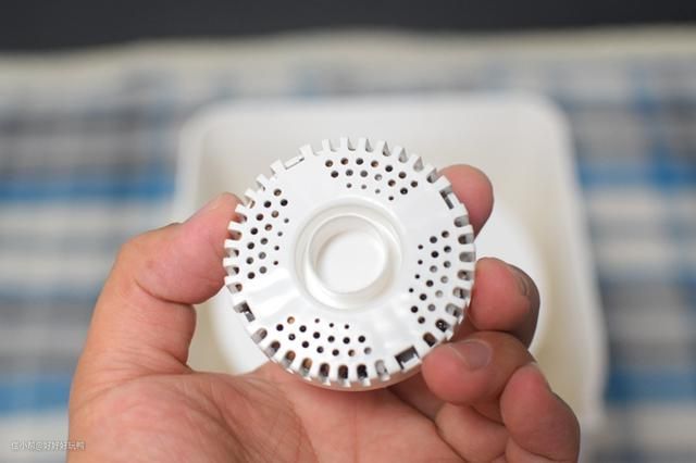 这个圆形小盒就是四重进水过滤器,由精细过滤网、椰壳、沸石等集合一身,进水即滤,可以有效过滤水中颗粒或其他重金属杂质,说实话,这个过滤器真的很小,实际过滤效果,只能让实际考验。