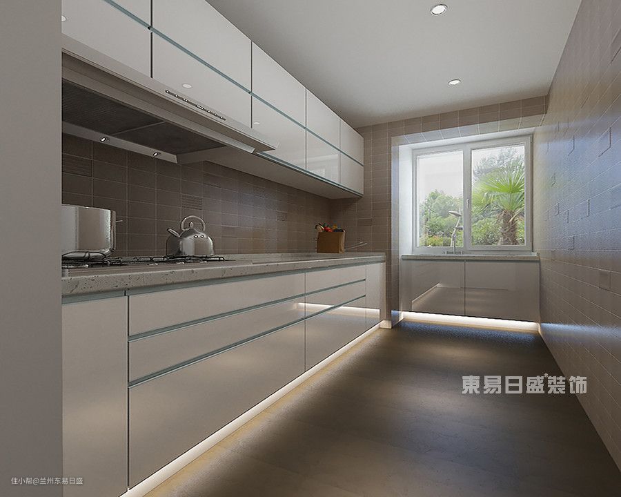 厨房在美国人家里一般是敞开的(由于其饮食烹饪习愤),进门首先可以欣赏到家居空间中对外的公共部分,餐厅是为了招待来宾和宴请朋友用的。一般而言,餐厅基本上都与厨房相连,厨房的面积较大,操作方便、功能强大。在与客厅相对的厨房的另一侧,一般都有一个不太大的便餐区,它在厨房的一隅,还要具备功能强大又简单耐用的厨具设备,如水槽下的残渣粉碎机,烤箱等需要有容纳双开门冰箱的宽敝位置和足够的操作台面。厨房的多功能还体现在家庭内部的人际交流多在这里进行,这两个区域会同起居室连成一个大区域,成为家庭生活的重心。