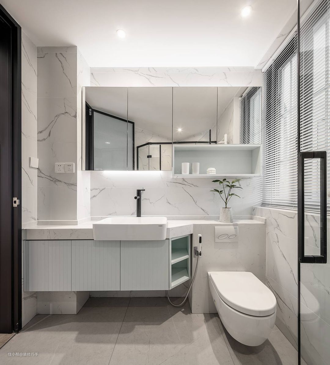 卫生间的洗脸台和马桶墙壁是定制的,洗脸台左边是下水道,所以就用大理石瓷砖一起包裹起来,这样效果更完整,然后顺着下水道轮廓做了洗脸台台面和柜子,洗脸盆是一个台上盆的设计,用的是陶瓷盆,简约时尚。柜子是悬空的,这样有利于打扫卫生,也节省空间,看起来更不压抑。柜子上面做了一面镜子,每面镜子都可以打开,因为镜子后面是一个收纳空间,整体效果美观又实用。以上就是整个房子的装修效果,看过这套房才知道,家不必非要豪装,简约清新之美,更能温暖人心!大家觉得呢?
