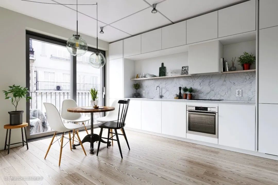 如果厨房面积不大也可以做开放式厨房将餐厅区域融入其中。