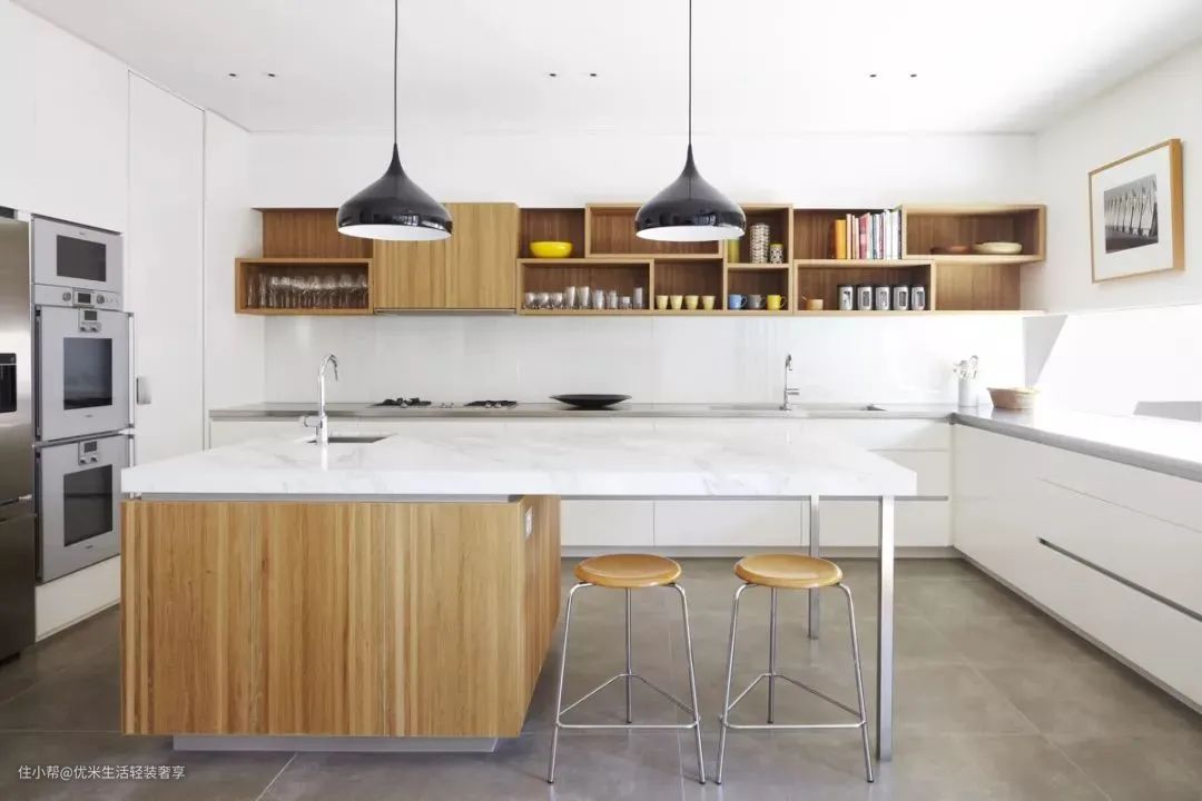 中岛型厨房在国外非常普遍,就是在厨房中间放置一个独立的料理台或工作台,家人和朋友可在料理台上共同准备餐点或闲话家常。