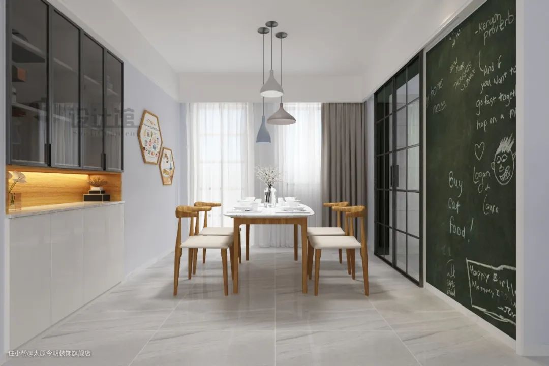 在设计的时候,可以提前把黑板墙规划好,无论是颜色还是造型图案上,巧妙合理的黑板墙设计,都可以让空间显得更加丰富有趣。