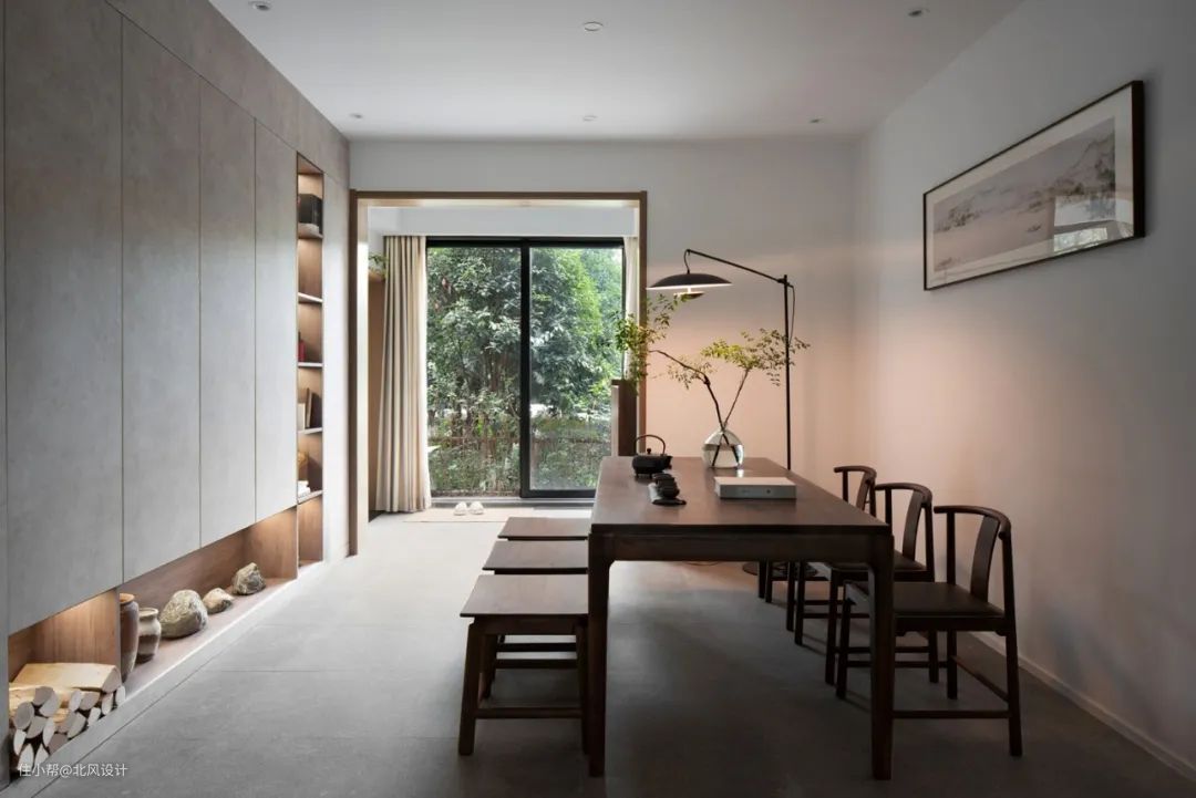 如果对沙发的需求不大,甚至可以直接把它省略掉,将餐桌作为客厅主体,打造出一个具有沉浸感的澄净空间。
