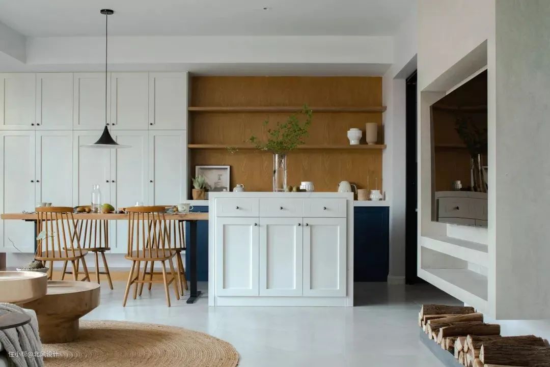 如果有条件,选择岛台、餐桌一体式的设计,在视觉上会更加简洁、利落,餐厨的整体感也会提升。