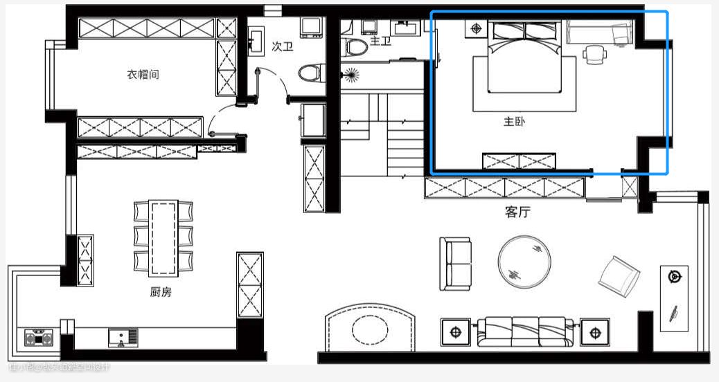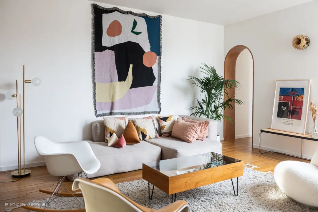 现代应用:如果你没有这样的感觉和顾虑,只要沙发背后不要朝着空旷开阔的走廊,灵活变动沙发的位置,会解锁高效利用空间的新布局。
