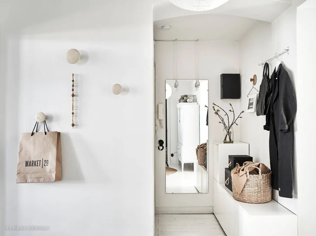 现代应用:现代小户型,玄关往往只是进门处的一小块空间,面积有限,除了保证隐私,还要满足换鞋挂衣的需求,作为过渡空间,同时承载着多种使用功能。