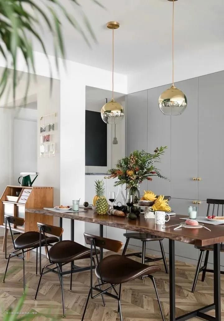 与地板颜色、餐桌、餐椅的颜色相呼应
