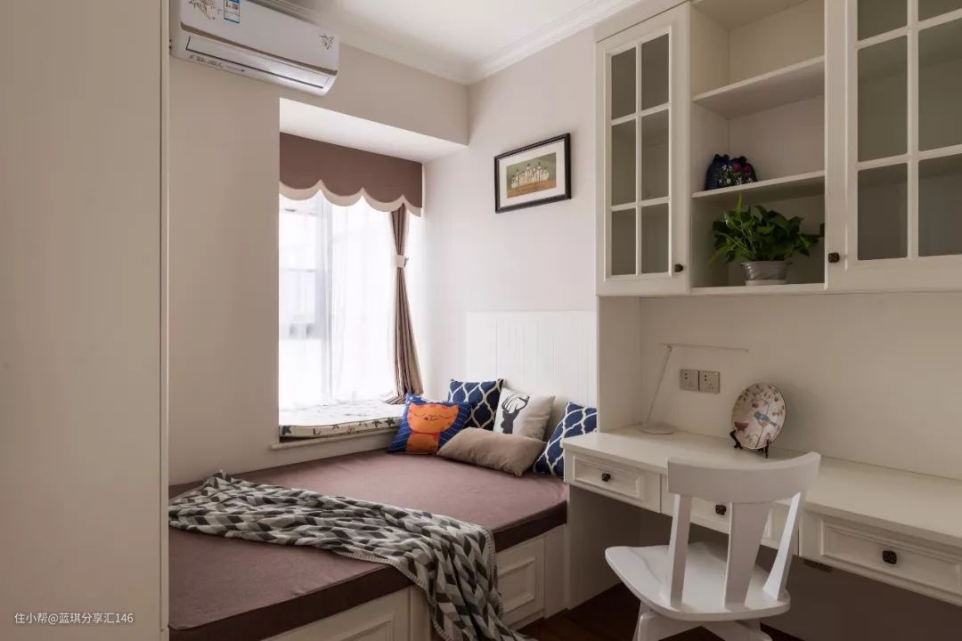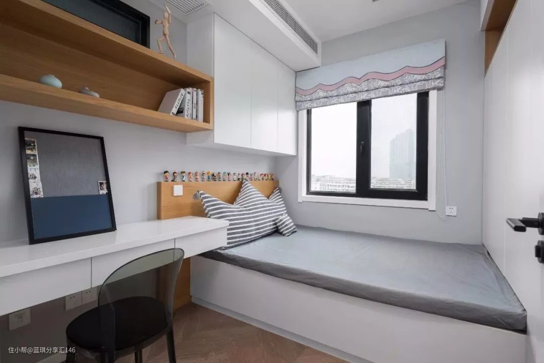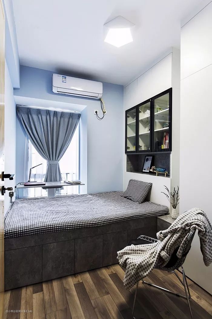 但在小卧室的设计中,为了利用好空间往往是要做榻榻米床的,而榻榻米床跟普通床铺不一样,若在定制阶段没设计好靠背的话,那么靠上去的体验就会非常差了,无论如何调整姿势,总感觉不舒服。