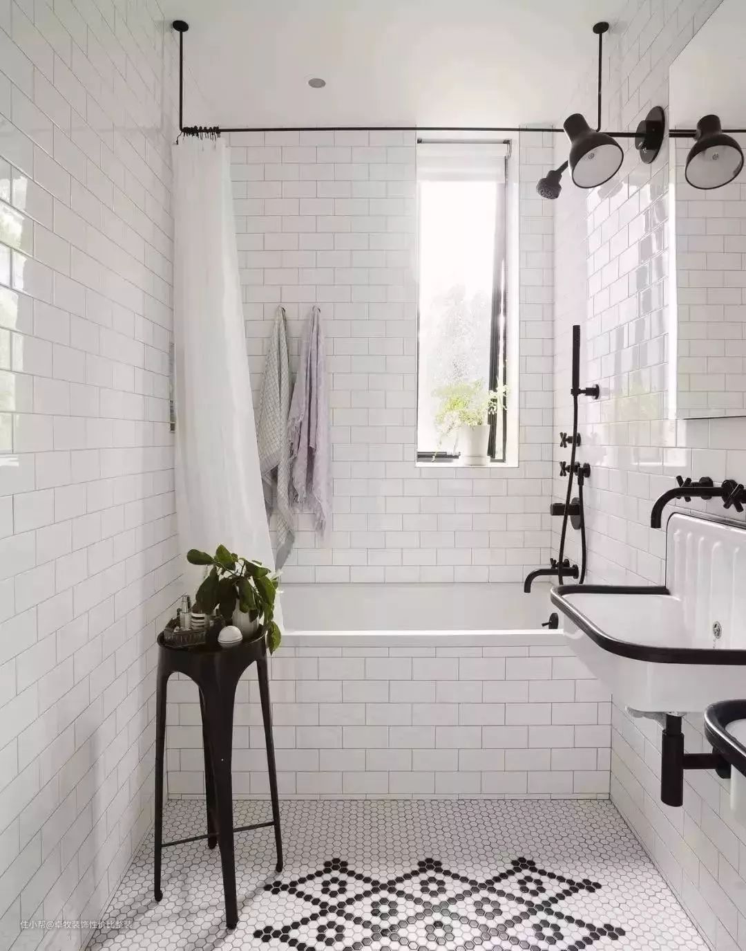 可以选择以黄、白色为主的亮面瓷砖,配上精美的拼花,效果会更佳。