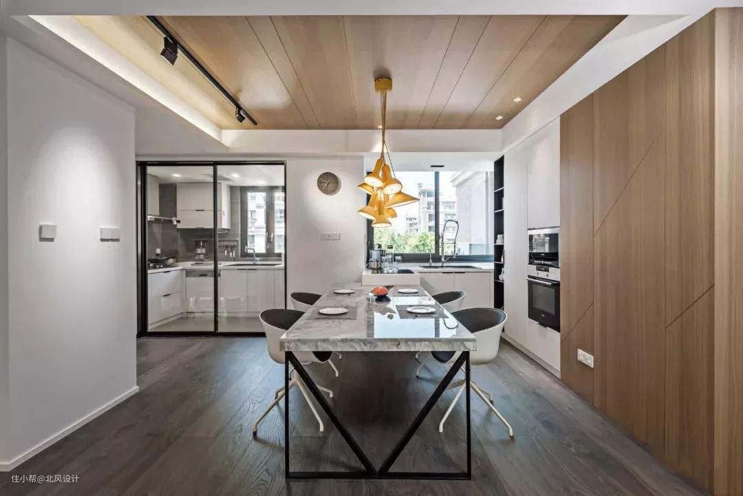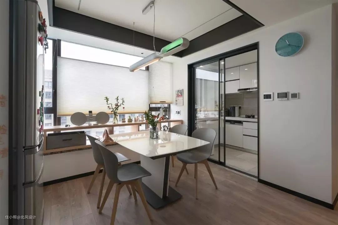 ▲ 餐厨一体设计就是把原本狭小的厨房做开放式处理,和餐厅打通,可以让厨房和餐厅共用空间,更加开阔。