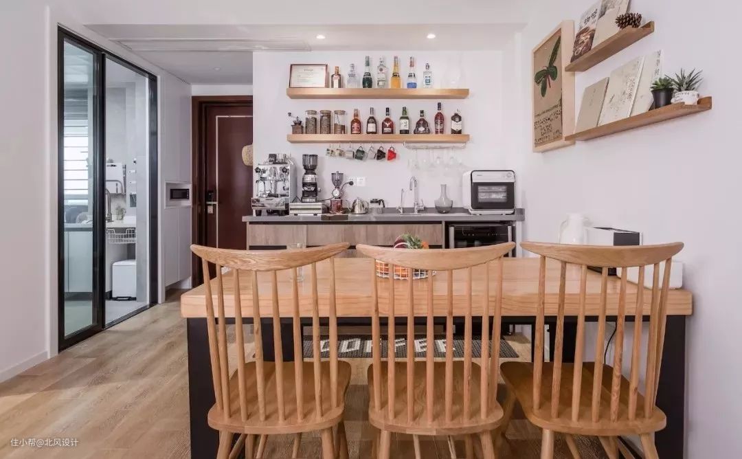 ▲ 餐厨一体设计,橱柜就相当于承担了餐边柜的功能。