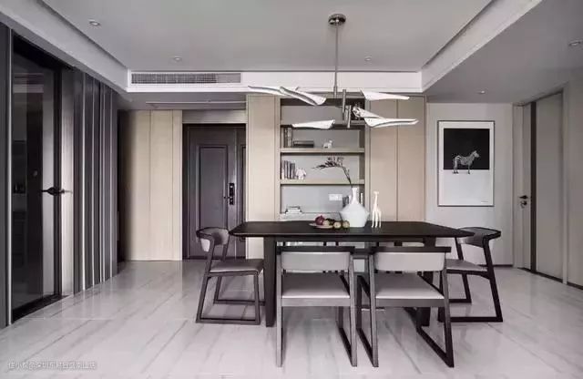 想让餐厅视野更加开阔,让餐厅更显宽敞,用矮边柜就能实现,低矮的家具能够降低视觉重心,达到放大餐厅空间的效果。