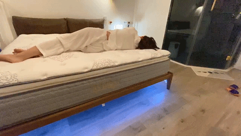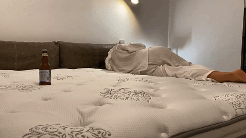 在床垫上放上一瓶啤酒,可以看到我老婆在翻身的过程中,酒瓶依然稳稳立住,丝毫不受影响。