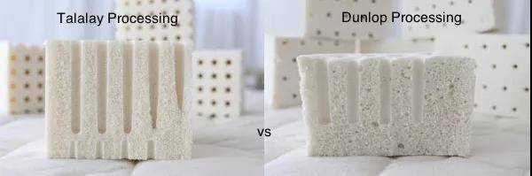 乳胶工艺分为邓禄普Dunlop(热发泡)和特拉雷Talalay(冷发泡)工艺。