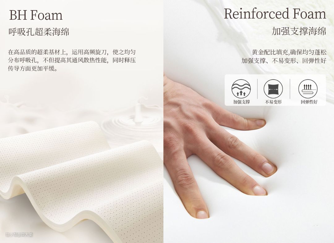 也是国人的最爱,喜欢Q弹软糯的睡感,可以选择。一般厚度2cm为宜,薄了没什么意义,厚了又会偏软。