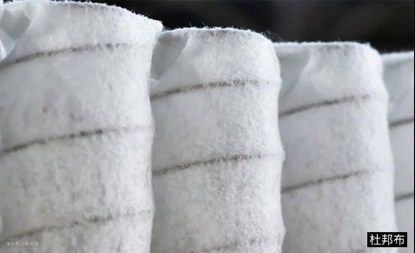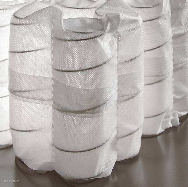 另外就是布袋的材质了,普通的床垫,布袋用低克数无纺布(薄如蝉翼,一抠一个洞),容易粉化,寿命短;比较好的床垫,布袋用高克数无纺布(比较厚,手撕费力)或者美国杜邦公司的杜邦布,扯不动抠不烂,使用寿命至少比无纺布多五六年。