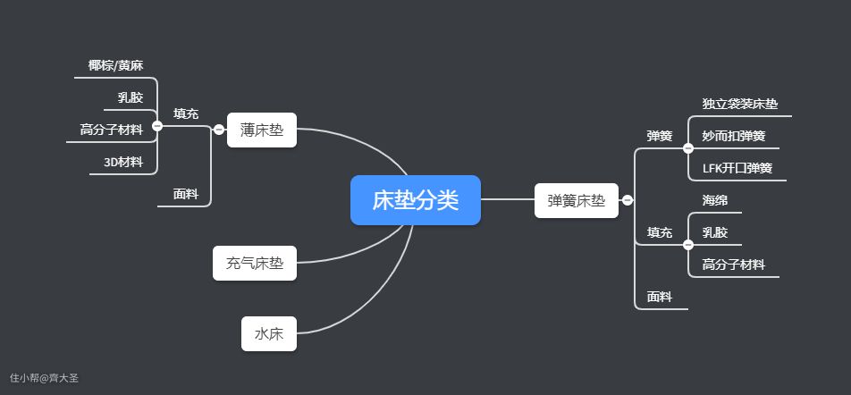 根据床垫填充物的不同,床垫大致可分为以下几类:
