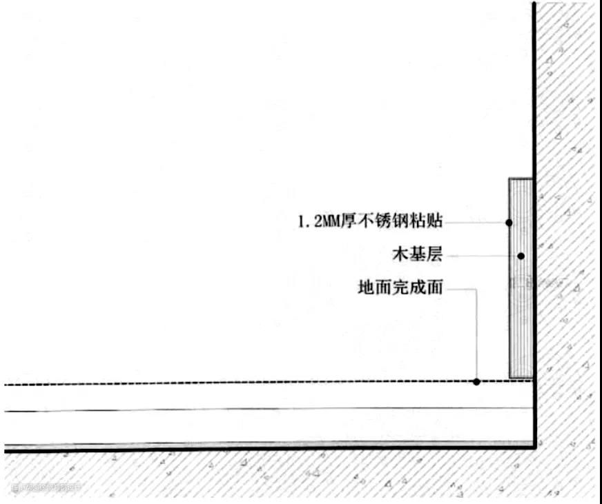 金属踢脚线,则是直接把金属通过结构胶粘贴在木基层上。