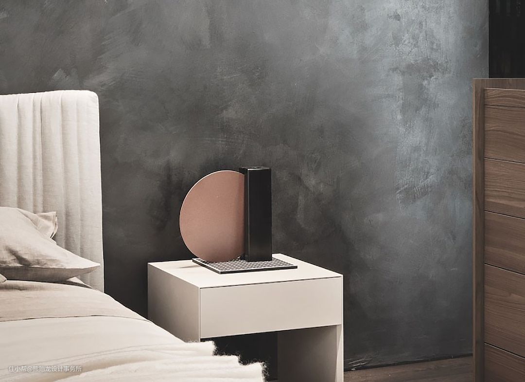 现代简约线条的背景墙,采用欧意科思的艺术涂料赋予墙面天鹅绒般效果。