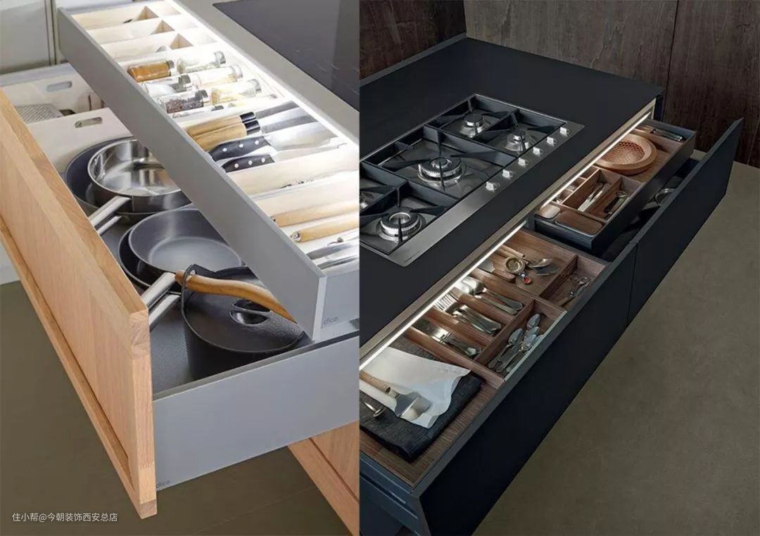 常用的橱柜光源有灯带和小灯两种,一般处于隐藏状态。
