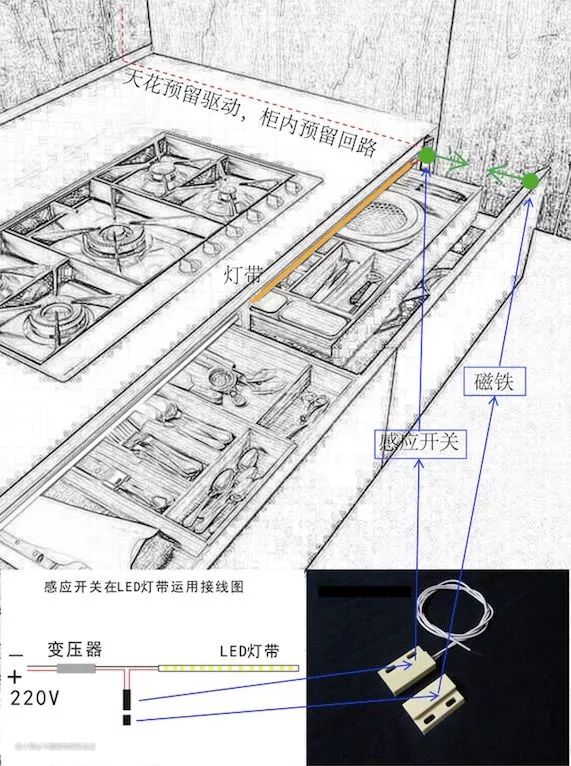 ② 安装配置门磁感应开关和4.8W灯带,随开随亮