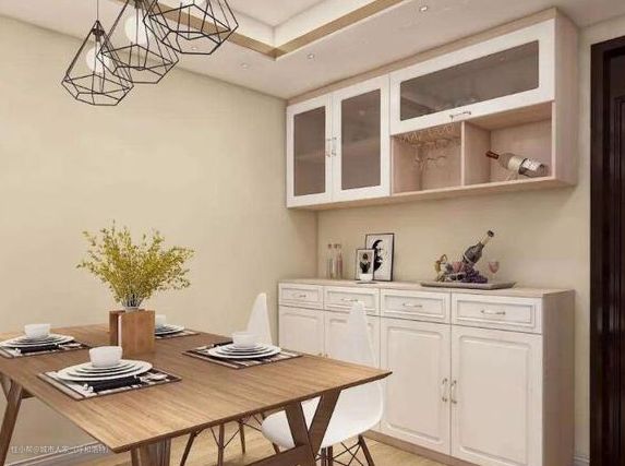 那装一个餐边柜,这些杂物都可以通通放到柜子上了,你的餐桌也恢复了面积,而且还可以发挥其功能作用哦。