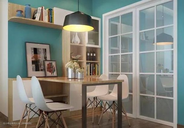 1.临时办公桌如果家里没有书房的,客厅茶几坐着也不舒服,那餐桌的高度和宽度都比较适合作为临时工作区域。