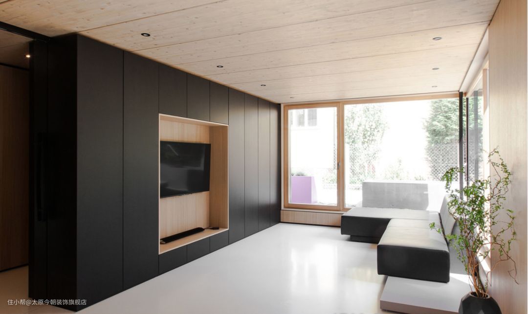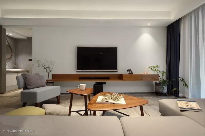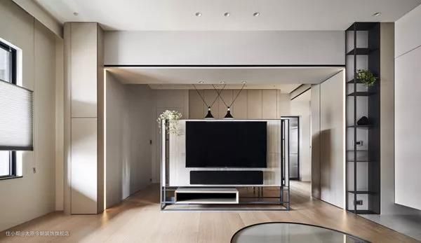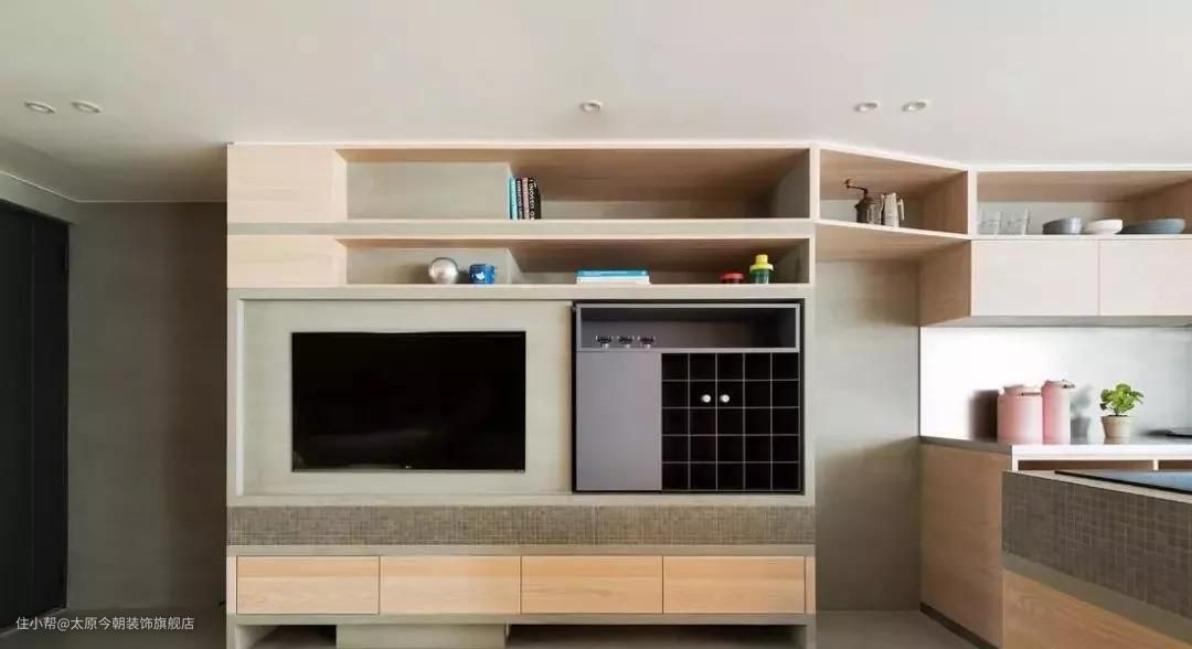 以电视为中心,打一层或者两层隔板。隔板的颜色可以参考整体家居选择与地板或者家具同款配色,整体显得和谐又不累赘。